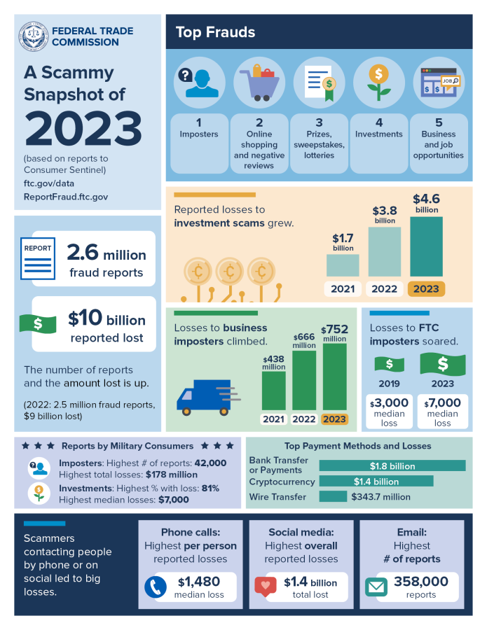 We are all familiar with the warning signs of scams, such as pyramid schemes or requests from individuals claiming to be Nigerian royalty needing help with a large inheritance. In the past, these were commonly referred to as "con-men," where the scammer gains your trust and takes off with your money. However, modern scams can be more difficult to detect. Investment scams, in particular, have become a significant issue, leading the FBI, Federal Trade Commission (FTC), and Better Business Bureau (BBB) to release reports on the alarming rise in reported investment scams by consumers in 2023.
